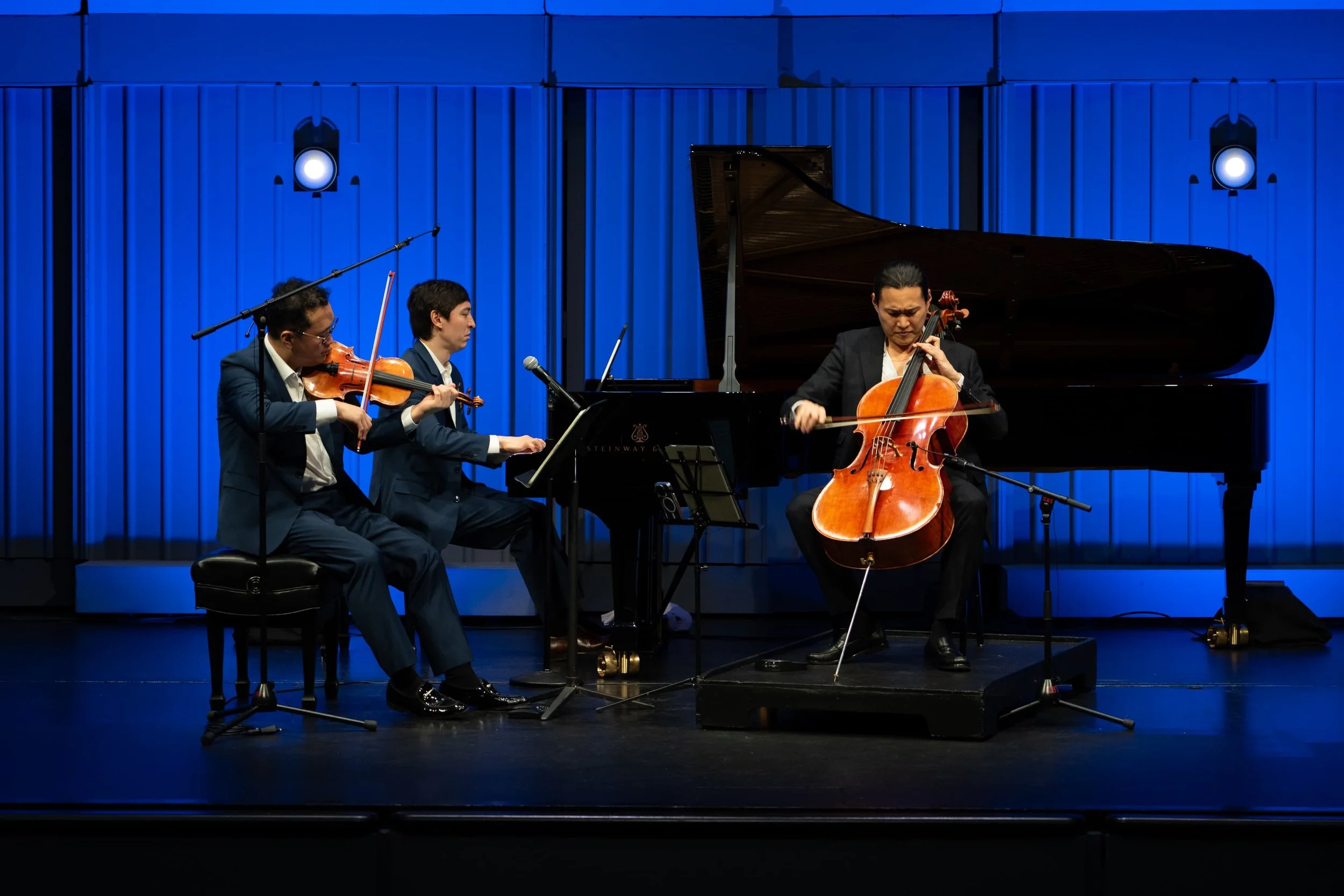 Trio Barclay® has commissioned a new composition for every season performance on their home stage including works by John Wineglass, Sheridan Seyfried, Sebastian Chang, Ya-Jhu Yang and Fernando Arroyo García-Lascurain. Trio Barclay has been invited to perform across the United States and Asia. Their appearances at the Busan International Chamber Music Festival and Festival Mozaic in San Luis Obispo in recent seasons saw them become instant favorites. They can be heard on the soundtrack to DEFINING COURAGE: THE DOCUMENTARY streaming as the 25th Episode of OUR AMERICA on DISNEY+ and HULU. Trio Barclay is the first Ensemble-in-Residence of the Irvine Barclay Theatre in Orange County, California.